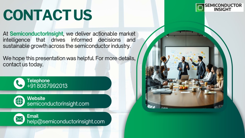 10. CONTACT US At SemiconductorInsight, we deliver actionable market intelligence that drives informed decisions and sustainable growth across the semiconductor industry. We hope this presentation was helpful. For more details, contact us today. Telephone +91 8087992013 Website semiconductorinsight.com Email help@semiconductorinsight.com
