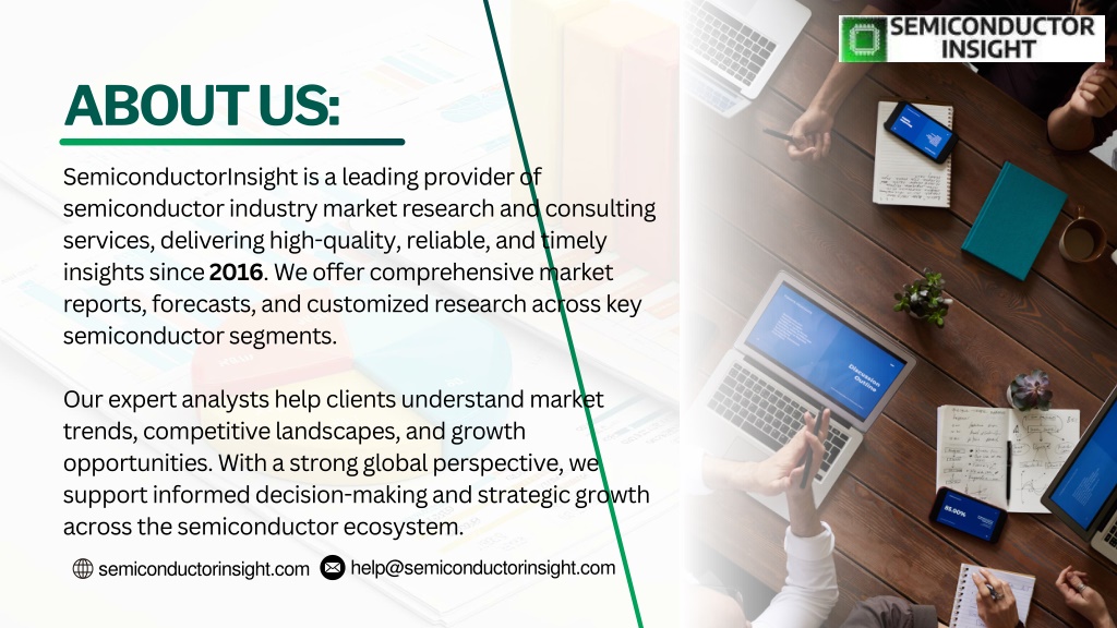 9. help@semiconductorinsight.com semiconductorinsight.com ABOUT US: SemiconductorInsight is a leading provider of semiconductor industry market research and consulting services, delivering high-quality, reliable, and timely insights since 2016. We offer comprehensive market reports, forecasts, and customized research across key semiconductor segments. Our expert analysts help clients understand market trends, competitive landscapes, and growth opportunities. With a strong global perspective, we support informed decision-making and strategic growth across the semiconductor ecosystem.