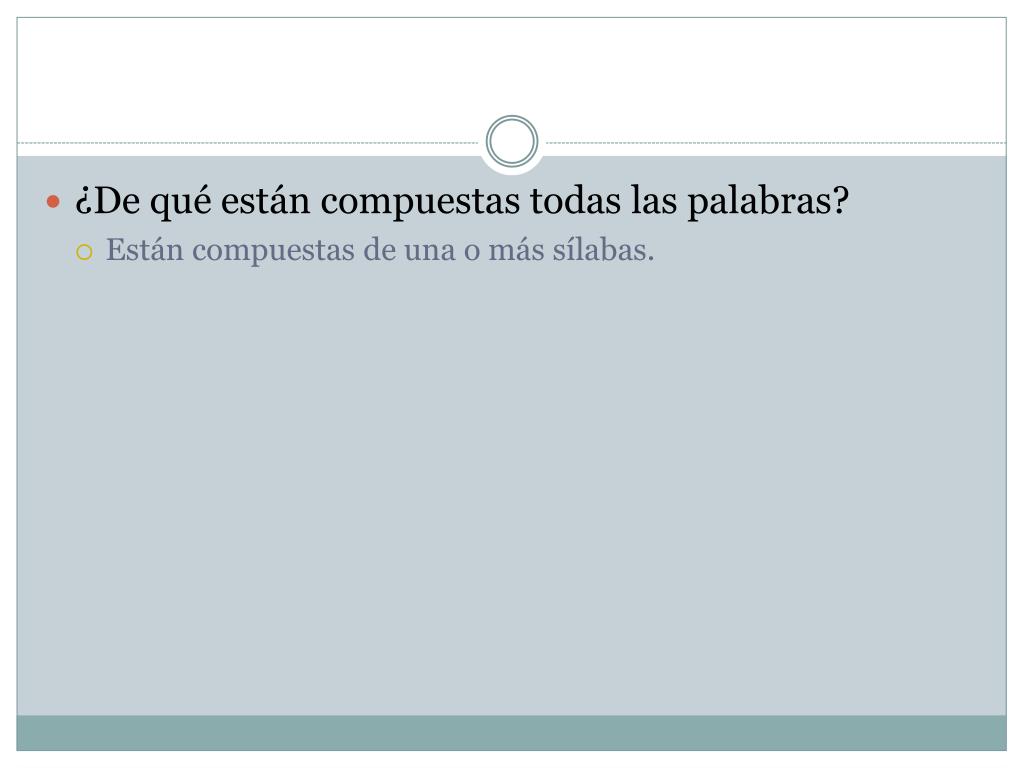¿De qué están compuestas todas las palabras? • Están compuestas de una o más sílabas.