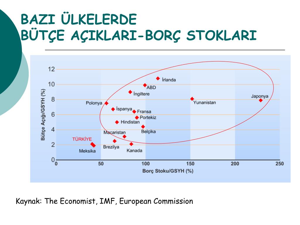 BAZI ÜLKELERDE BÜTÇE AÇIKLARI-BORÇ STOKLARI Kaynak: The Economist, IMF, European Commission