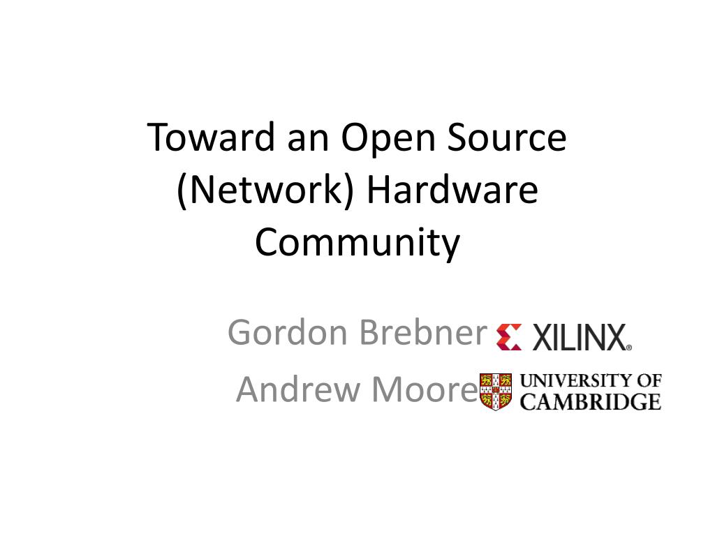 Toward an Open Source (Network) HardwareCommunity Gordon Brebner Andrew Moore