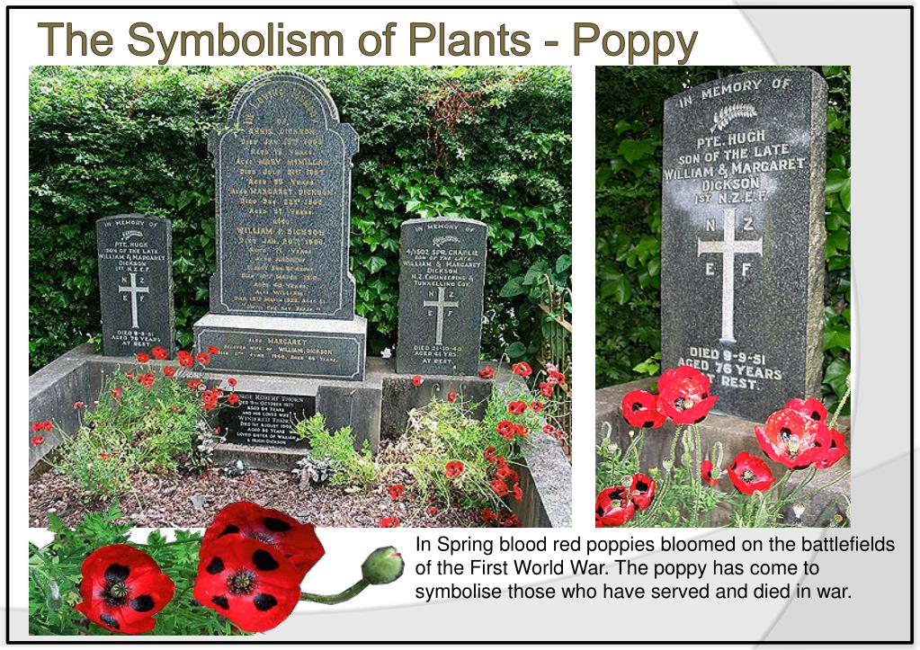 The Symbolism of Plants - Poppy In Spring blood red poppies bloomed on the battlefields of the First World War. The poppy has come to symbolise those who have served and died in war.