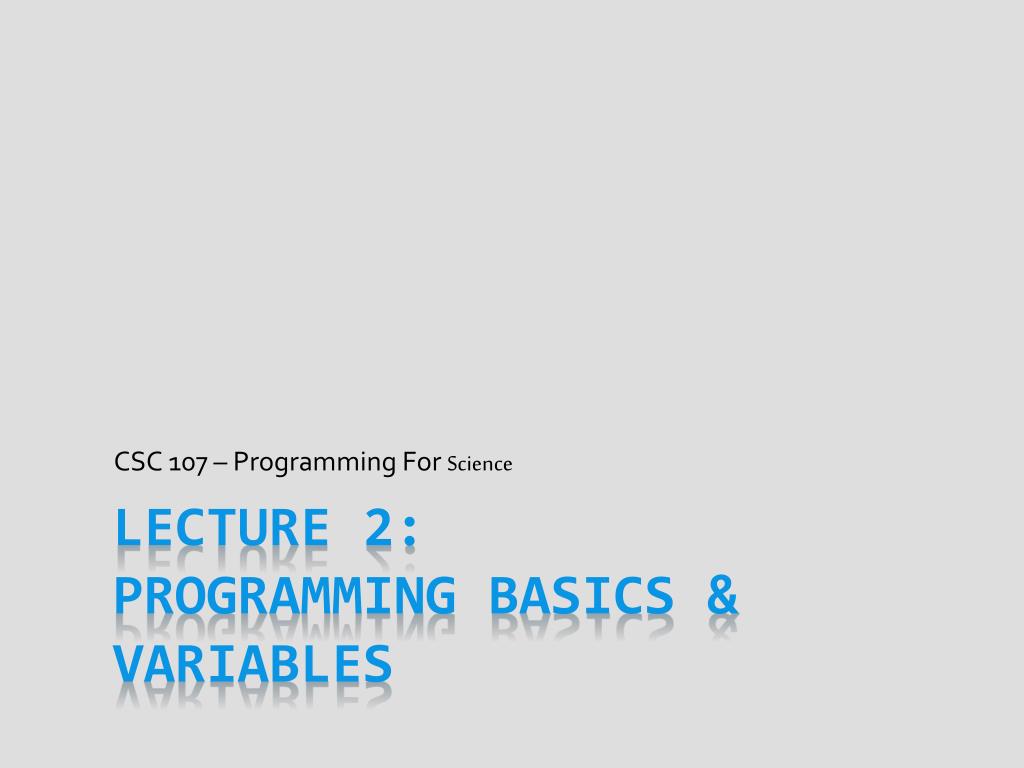 CSC 107 – Programming For Science Lecture 2:Programming Basics & Variables
