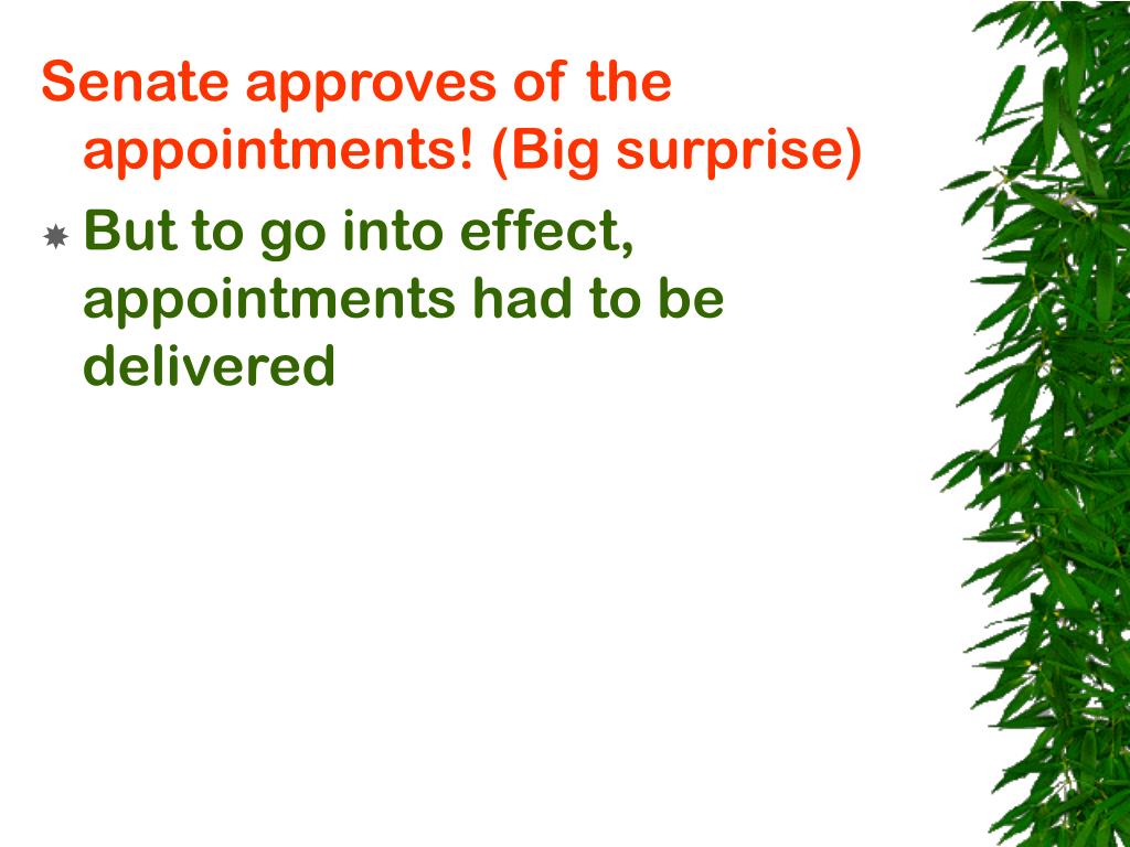 Senate approves of the appointments! (Big surprise) • But to go into effect, appointments had to be delivered