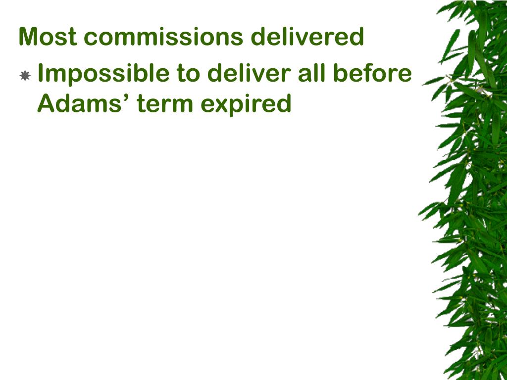 Most commissions delivered • Impossible to deliver all before Adams’ term expired