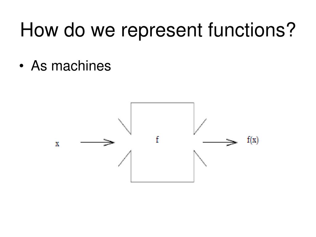 How do we represent functions? • By Formula • f(x) = 2x2 + 3