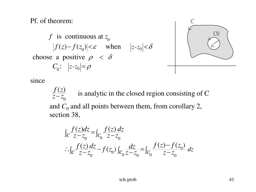 Pf. of theorem: since is analytic in the closed region consisting of C and C0 and all points between them, from corollary 2, section 38, tch-prob