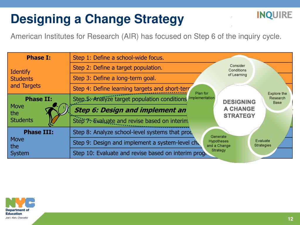 Designing a Change Strategy • American Institutes for Research (AIR) has focused on Step 6 of the inquiry cycle.