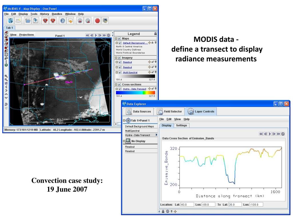 MODIS data - define a transect to display radiance measurements Convection case study:19 June 2007