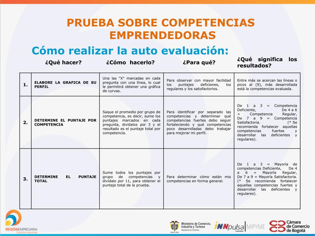 PRUEBA SOBRE COMPETENCIAS EMPRENDEDORAS Cómo realizar la auto evaluación: