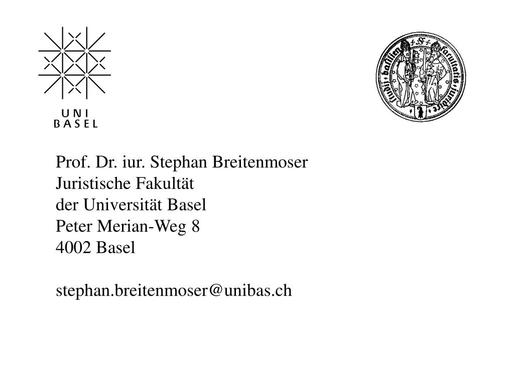 Prof. Dr. iur. Stephan Breitenmoser Juristische Fakultät der Universität Basel Peter Merian-Weg 8 4002 Basel stephan.breitenmoser@unibas.ch