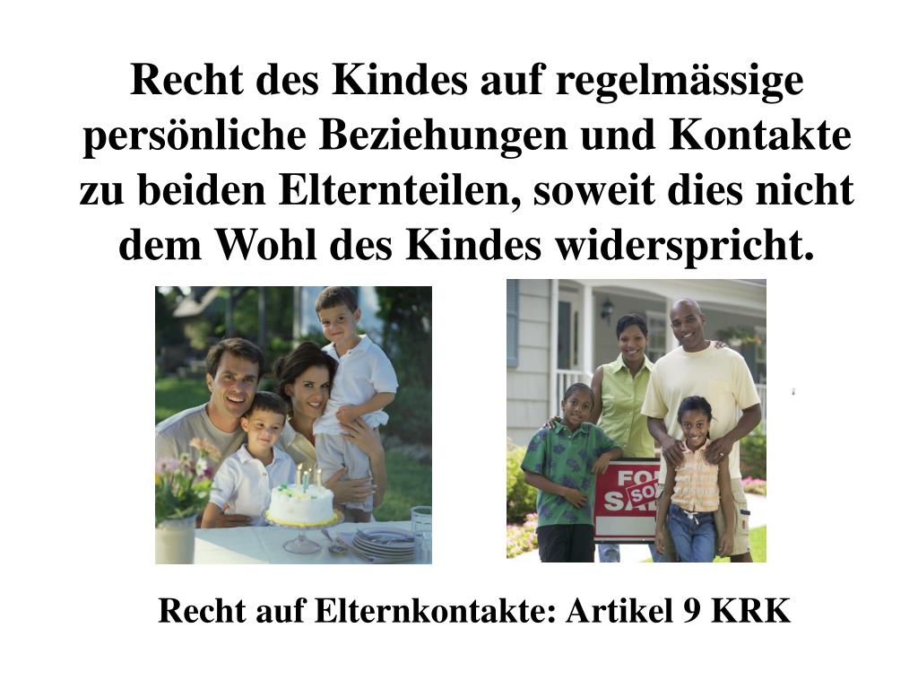 Recht des Kindes auf regelmässigepersönliche Beziehungen und Kontakte zu beiden Elternteilen, soweit dies nicht dem Wohl des Kindes widerspricht. Recht auf Elternkontakte: Artikel 9 KRK