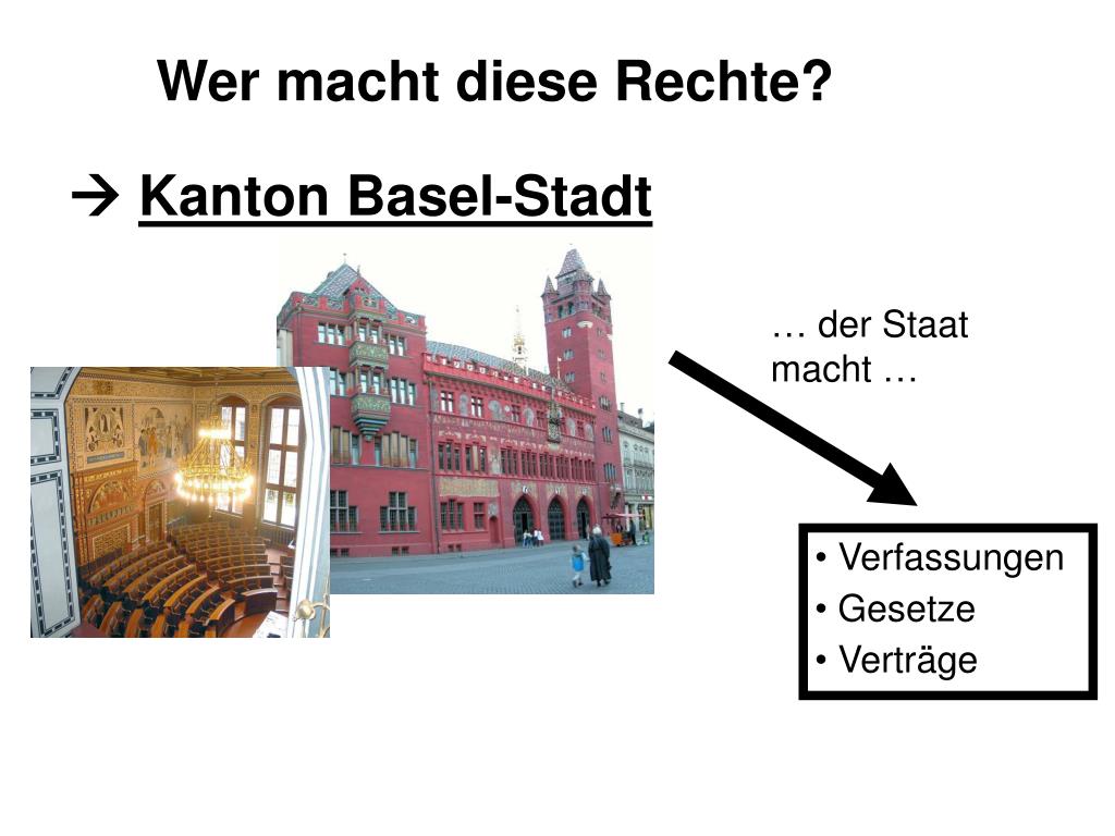 … der Staat macht … • Verfassungen • Gesetze • Verträge Wer macht diese Rechte? Kanton Basel-Stadt