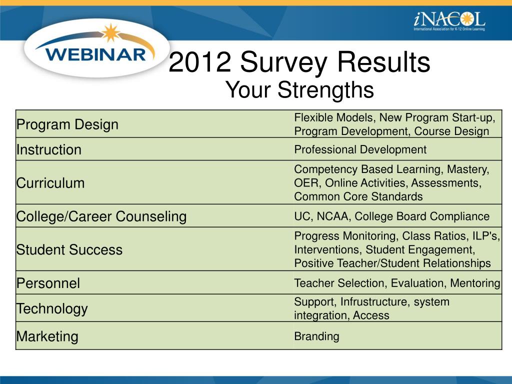 Updates! • iNACOL Staff • Susan Patrick, President and CEO • Matt Wicks, Chief Operating Officer • Allison Powell, VP State and District Services • Linda Wood, Director of Operations • David Teeter, Director of Policy • Sherry Piciacchio, Executive Assistant to President/CEO • Judy Hook, Financial Services Assistant • Tracy Breithaupt, Events Manager • New since May (now a staff of 14!) • Jonathan Oglesby, Director of External Affairs • Rob Darrow, Director of Membership • Janet Amaral, Membership Assistant • Bruce Friend, Director of Development • Dave Edwards, Quality Assurance Manager • Soon to be named Knowledge Manager