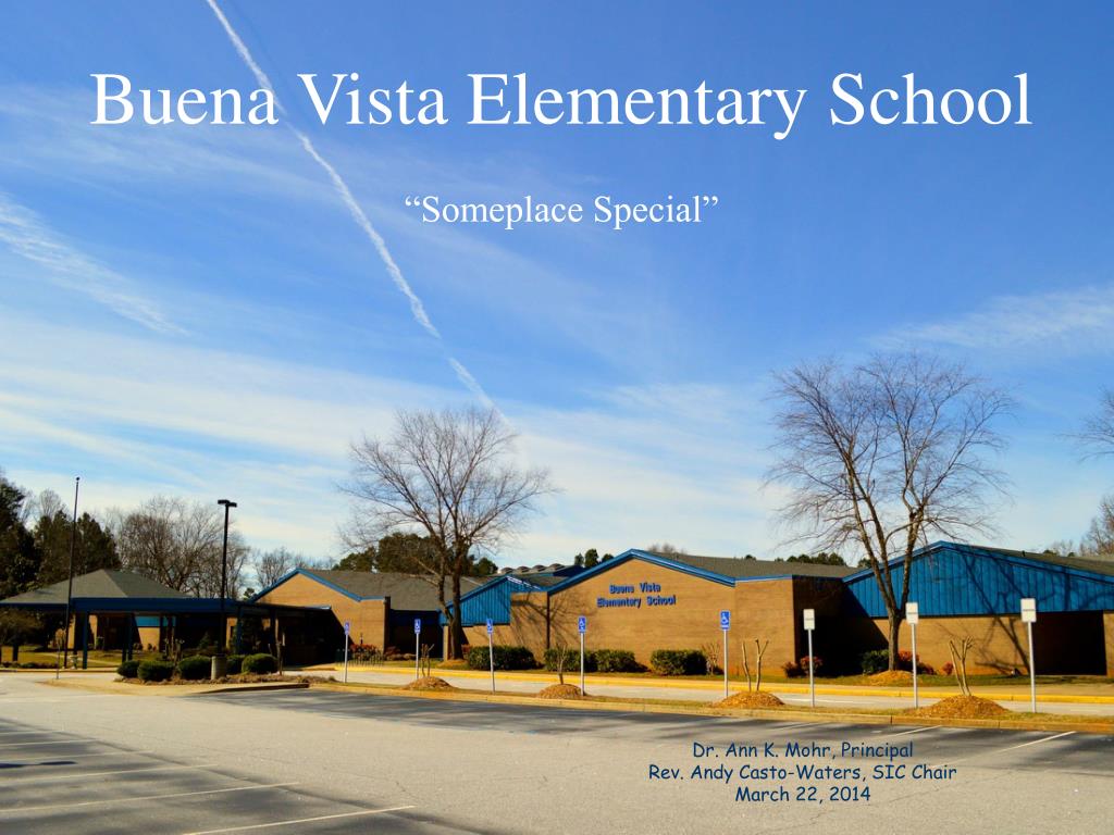 Buena Vista Elementary School “Someplace Special”. Dr. Ann K. Mohr, Principal Rev. Andy Casto-Waters, SIC Chair March 22, 2014. Buena Vista Elementary. “Someplace Special”. The Mission:.