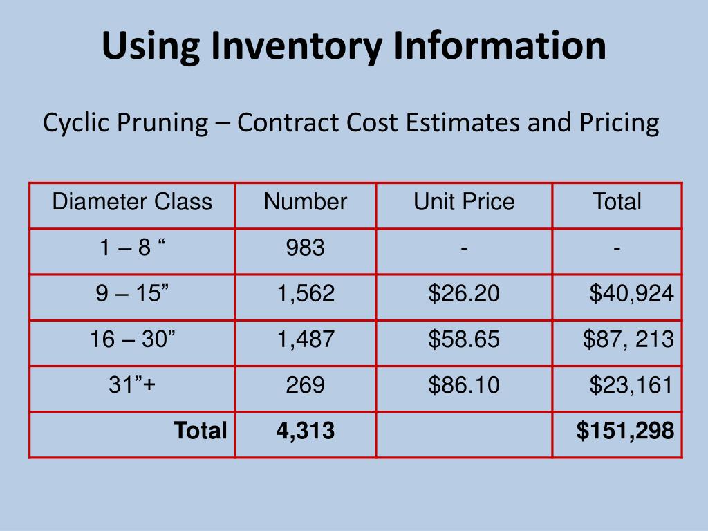 Using Inventory Information Cyclic Pruning – Contract Cost Estimates and Pricing