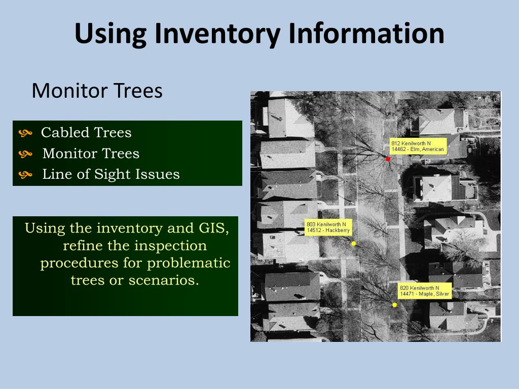 Inventory Software Numerous commercial systems exist on the market that are either stand alone tree systems or part of a larger public works asset management program.