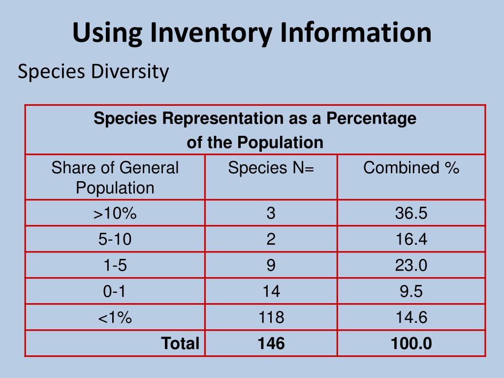 Using Inventory Information Species Diversity