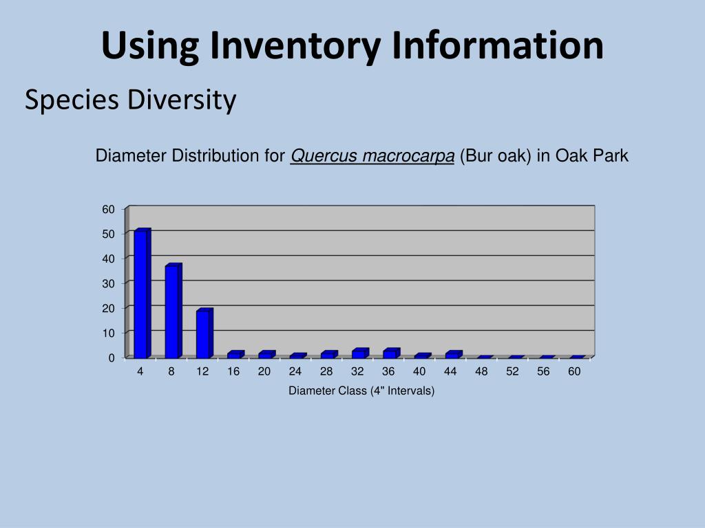 Using Inventory Information Species Diversity Diameter Distribution for Quercus macrocarpa (Bur oak) in Oak Park