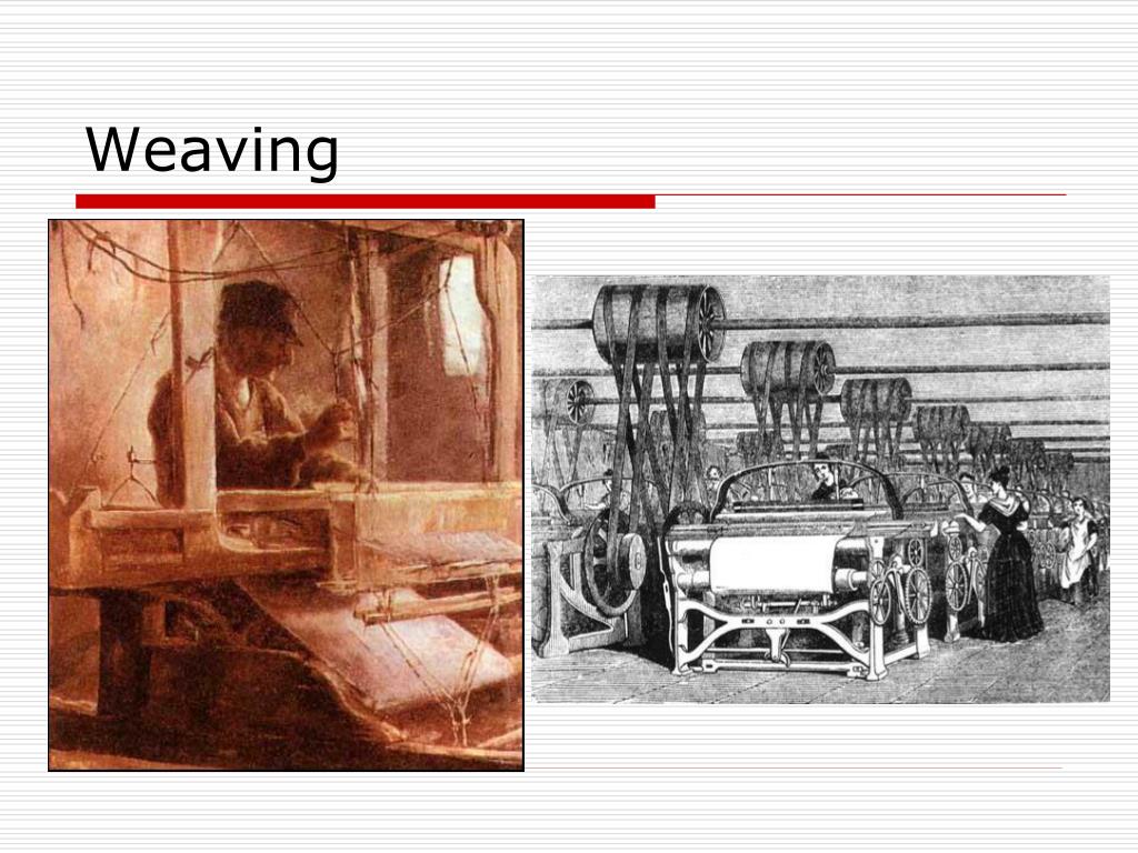 Technological changes • Steam engine (power technology) • Metallurgy (iron and steel) • Textiles • Spinning • Weaving
