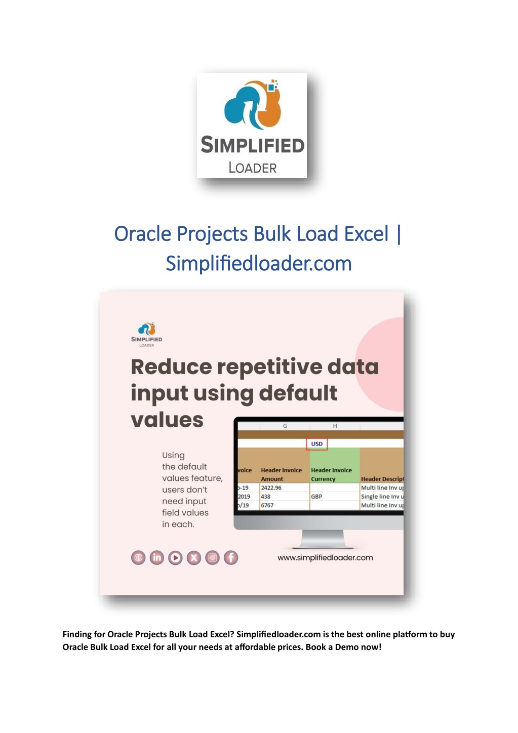 1. Oracle Projects Bulk Load Excel | Oracle Projects Bulk Load Excel | Simplifiedloader.com Simplifiedloader.com Finding for Oracle Projects Bulk Load Excel? Simplifiedloader.com is the best online platform to buy Oracle Bulk Load Excel for all your needs at affordable prices. Book a Demo now!