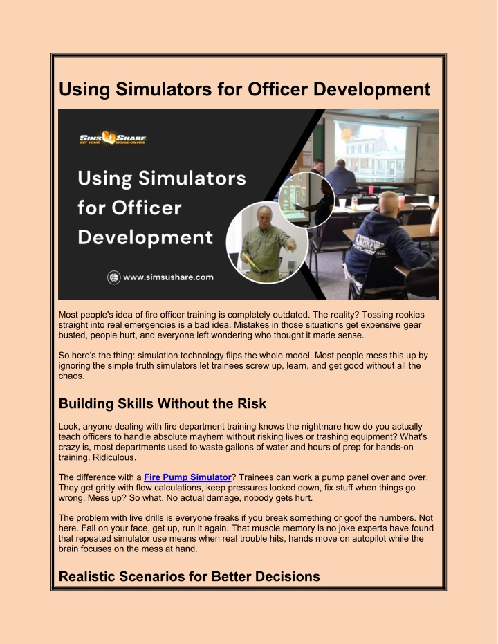 Most people's idea of fire officer training is completely outdated. The reality? Tossing rookies straight into real emergencies is a bad idea. Mistakes in those situations get expensive gear busted, people hurt, and everyone left wondering who thought it made sense.<br>