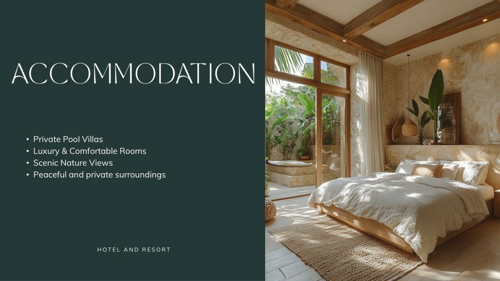 ACCOMMODATION • Private Pool Villas • Luxury & Comfortable Rooms • Scenic Nature Views • Peaceful and private surroundings HOTEL AND RESORT