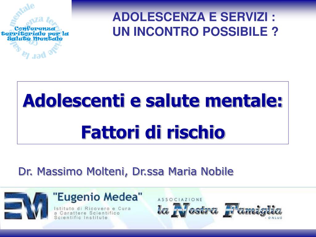 ADOLESCENZA E SERVIZI : UN INCONTRO POSSIBILE ? Adolescenti e salute mentale: Fattori di rischio Dr. Massimo Molteni, Dr.ssa Maria Nobile