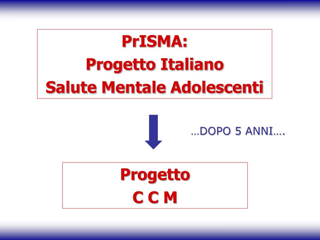 PrISMA: Progetto Italiano Salute Mentale Adolescenti …DOPO 5 ANNI…. Progetto C C M