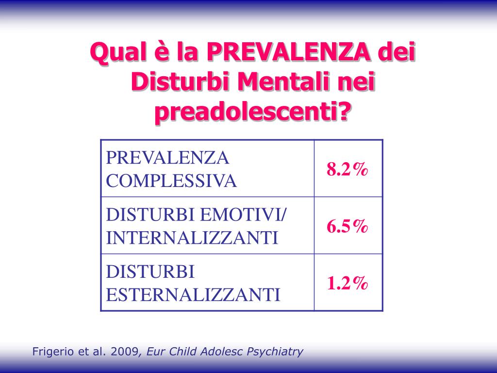 Qual è la PREVALENZA dei Disturbi Mentali nei preadolescenti? Frigerio et al. 2009, Eur ChildAdolescPsychiatry