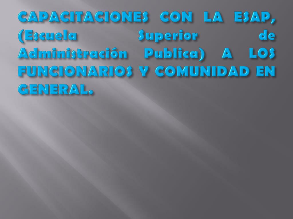 CAPACITACIONES CON LA ESAP, (Escuela Superior de Administración Publica) A LOS FUNCIONARIOS Y COMUNIDAD EN GENERAL.