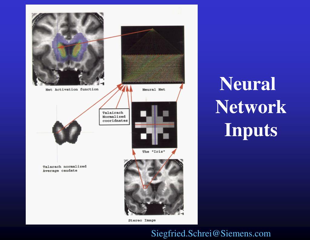 Currently defines the following regions Caudate Putamen Thalamus Cerebellum Cerebellar lobes (warping) Hippocampus (requires editing) Globus Pallidus (requires editing) In the near future will use a warped method for all structures – more valid, less editing Will also add nucleus accumbens and amygdala Neural Network