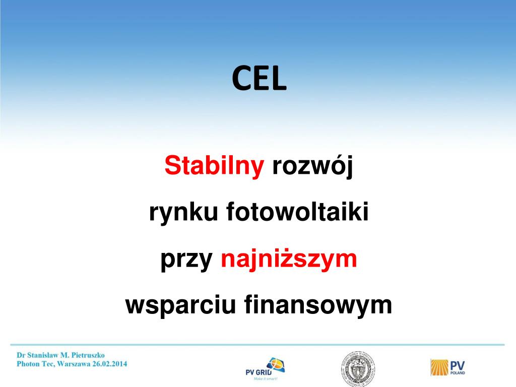 CEL Stabilny rozwój rynku fotowoltaikiprzy najniższym wsparciu finansowym
