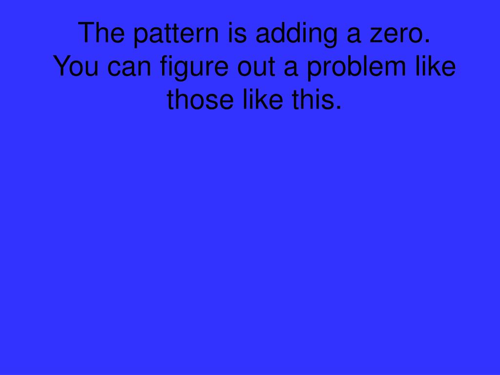 Do you see this pattern? 5x10=50 5x100=500 5x1000=5000 5x10000=50000