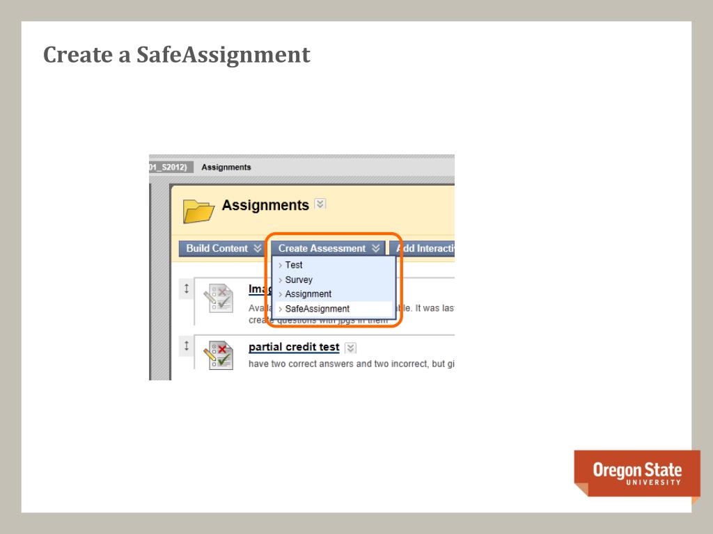 Introducing SafeAssign A tool to help students and instructors identify unoriginal content in student papers. • Students’ papers are compared to content in websites, online journals and other student papers in the SafeAssign system. • A report highlights passages in the paper that match the SafeAssign sources