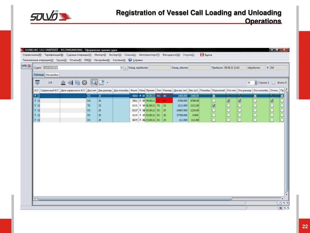 Road Transport Registration A list of containers to be loaded or unloaded with the assigned truck is sent from SOLVO.DMS toSOLVO.CTMS.