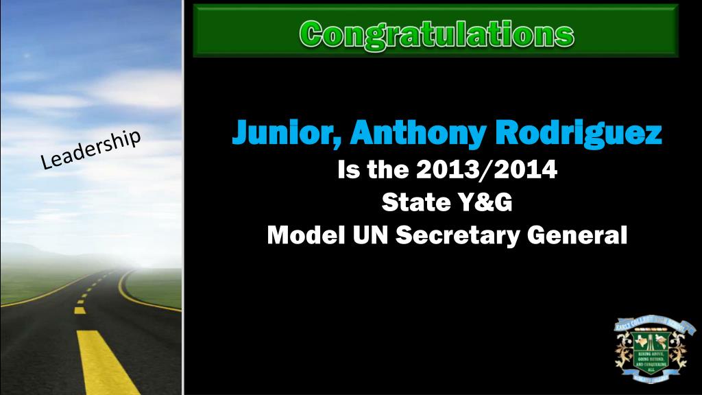 Congratulations Leadership Junior, Anthony Rodriguez Is the 2013/2014 State Y&G Model UN Secretary General