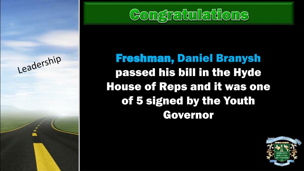 Congratulations Leadership Freshman, Daniel Branysh passed his bill in the Hyde House of Reps and it was one of 5 signed by the Youth Governor