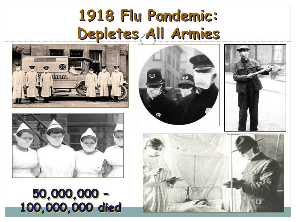 1918 Flu Pandemic: Depletes All Armies 50,000,000 – 100,000,000 died