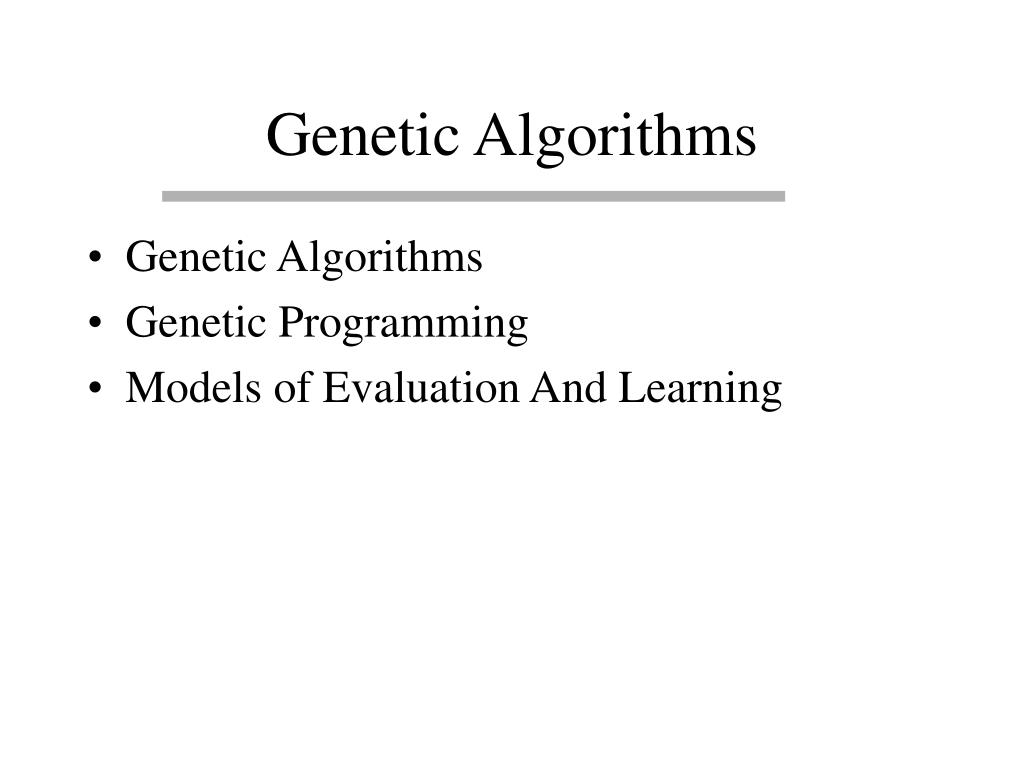 Genetic Algorithms • Genetic Algorithms • Genetic Programming • Models of Evaluation And Learning