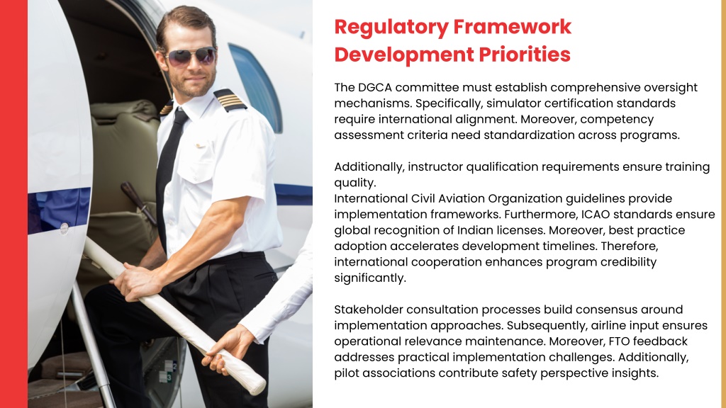 Regulatory Framework Development Priorities The DGCA committee must establish comprehensive oversight mechanisms. Specifically, simulator certification standards require international alignment. Moreover, competency assessment criteria need standardization across programs. Additionally, instructor qualification requirements ensure training quality. International Civil Aviation Organization guidelines provide implementation frameworks. Furthermore, ICAO standards ensure global recognition of Indian licenses. Moreover, best practice adoption accelerates development timelines. Therefore, international cooperation enhances program credibility significantly. Stakeholder consultation processes build consensus around implementation approaches. Subsequently, airline input ensures operational relevance maintenance. Moreover, FTO feedback addresses practical implementation challenges. Additionally, pilot associations contribute safety perspective insights.