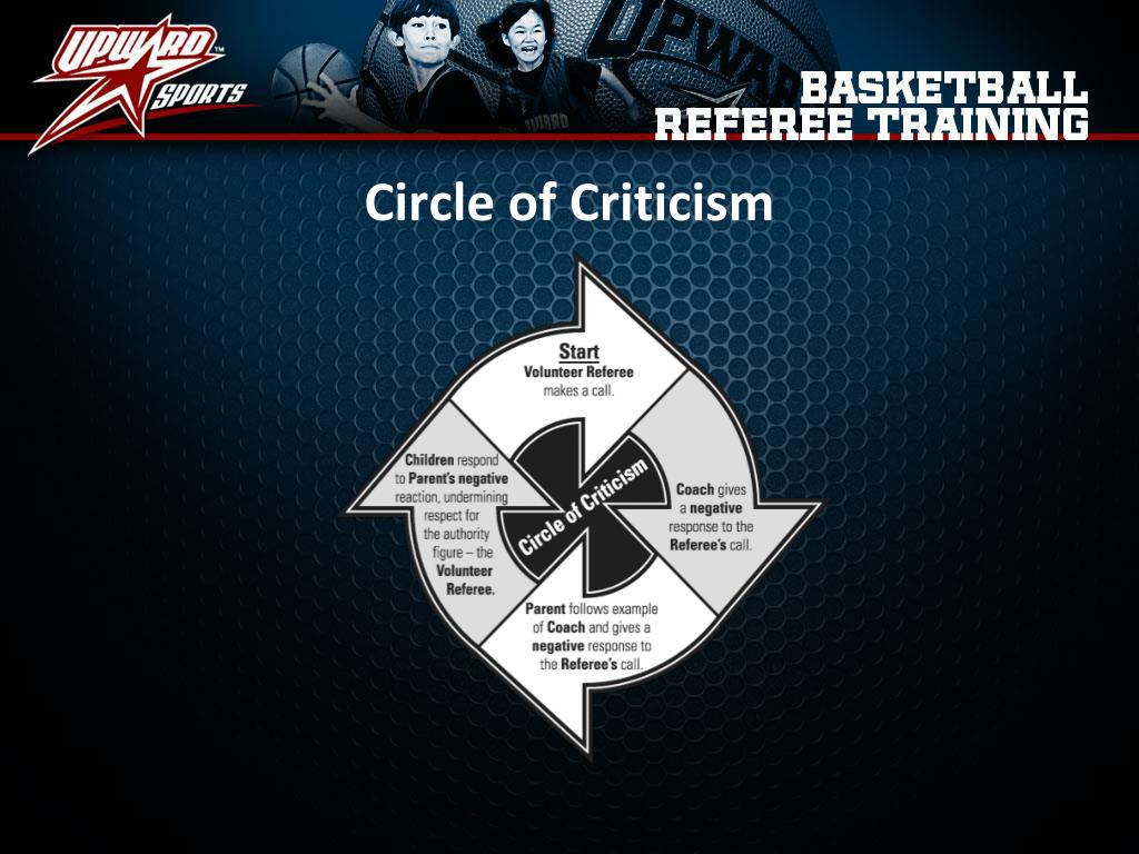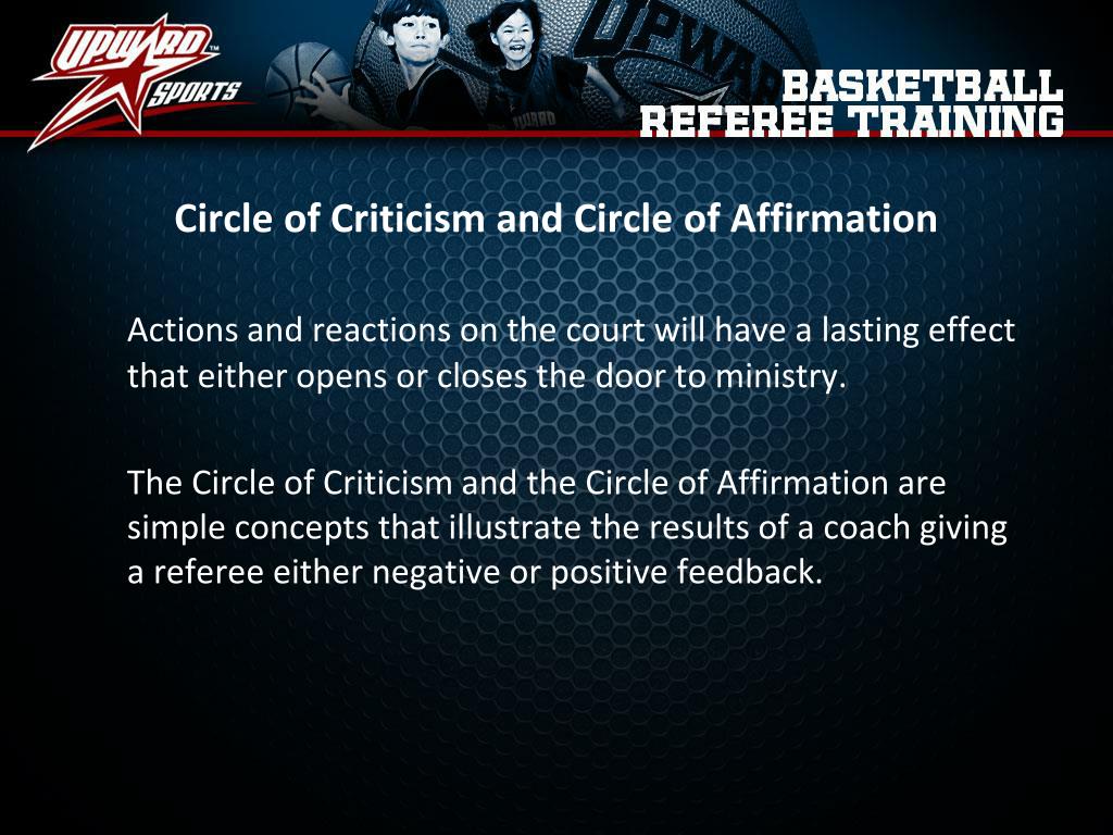 Circle of Criticism and Circle of Affirmation Actions and reactions on the court will have a lasting effect that either opens or closes the door to ministry. The Circle of Criticism and the Circle of Affirmation are simple concepts that illustrate the results of a coach giving a referee either negative or positive feedback.