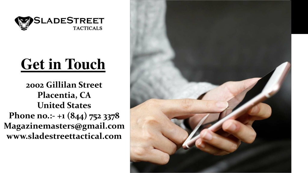 Get in Touch 2002 Gillilan Street Placentia, CA United States Phone no.:- +1 (844) 752 3378 Magazinemasters@gmail.com www.sladestreettactical.com