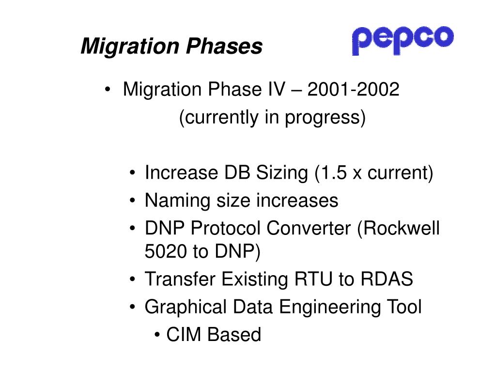 Migration Phases • PEPCO established a multi-year migration program: • To fully migrate the EMS every seven years. • PEPCO’s management committed to to fund the effort to avoid the high costs of another procurement.
