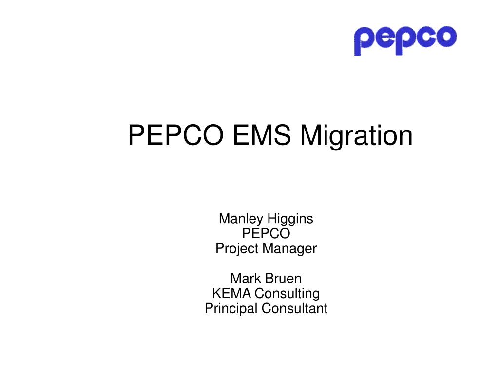 PEPCO EMS Migration Manley Higgins PEPCO Project Manager Mark Bruen KEMA Consulting Principal Consultant
