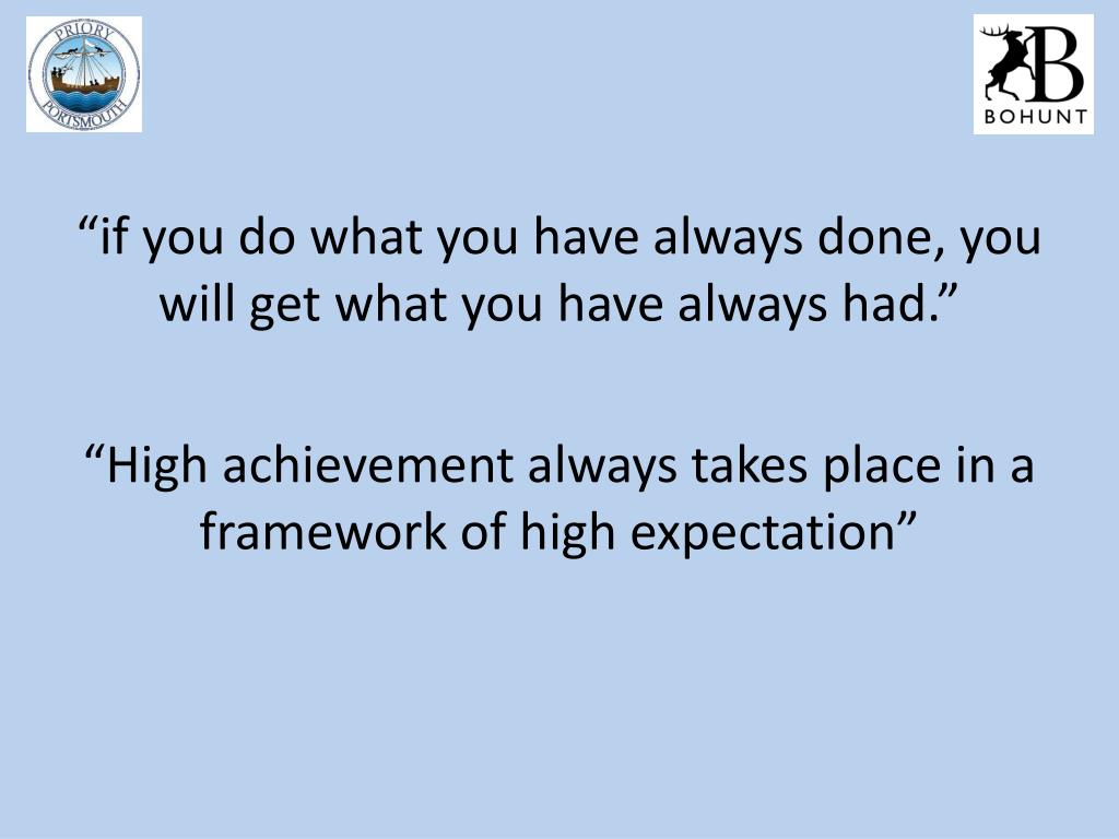 “if you do what you have always done, you will get what you have always had.” “High achievement always takes place in a framework of high expectation”