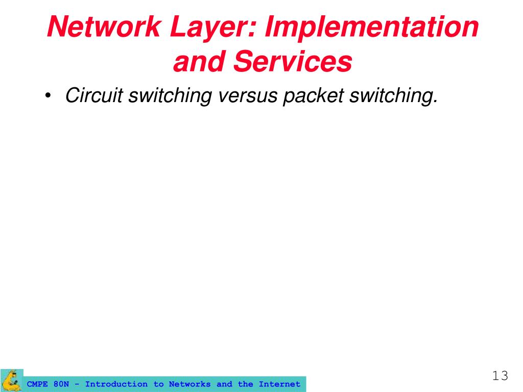 Network Layer: Implementation and Services • Circuit switching versus packet switching.