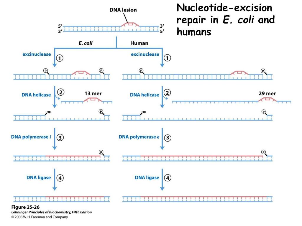 DNA Repair and Mutations. Chemical reactions and some physical processes constantly damage genomic DNA At the molecular level, damage usually involves changes in the structure of one of the strands Vast majority are corrected by repair systems using the other strand as a template
