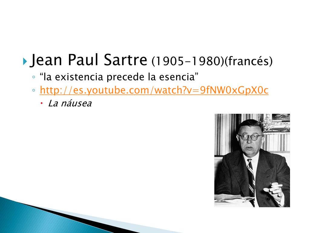 Jean Paul Sartre (1905-1980)(francés) • “la existencia precede la esencia” • http://es.youtube.com/watch?v=9fNW0xGpX0c • La náusea
