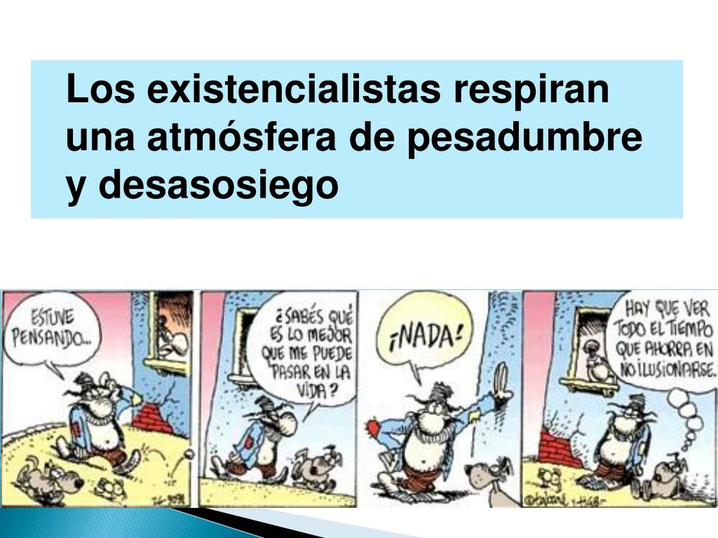 Los existencialistas respiran una atmósfera de pesadumbre y desasosiego • EXISTENCIA - ESENCIA